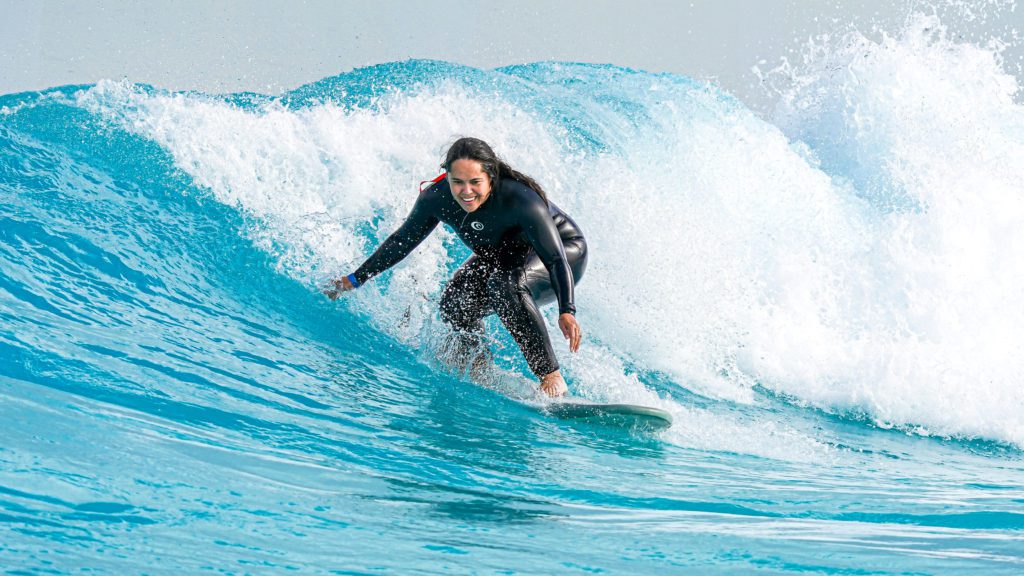 In fact, Paulina didn’t miss one wave in her intermediate session. She also had performance anxiety but credits booking a “play in the bay” session prior to her surf time helped calm her nerves. “There weren’t any real waves in the bay, but getting used to our boards and understanding how the water moves around the pool was all really helpful.”
