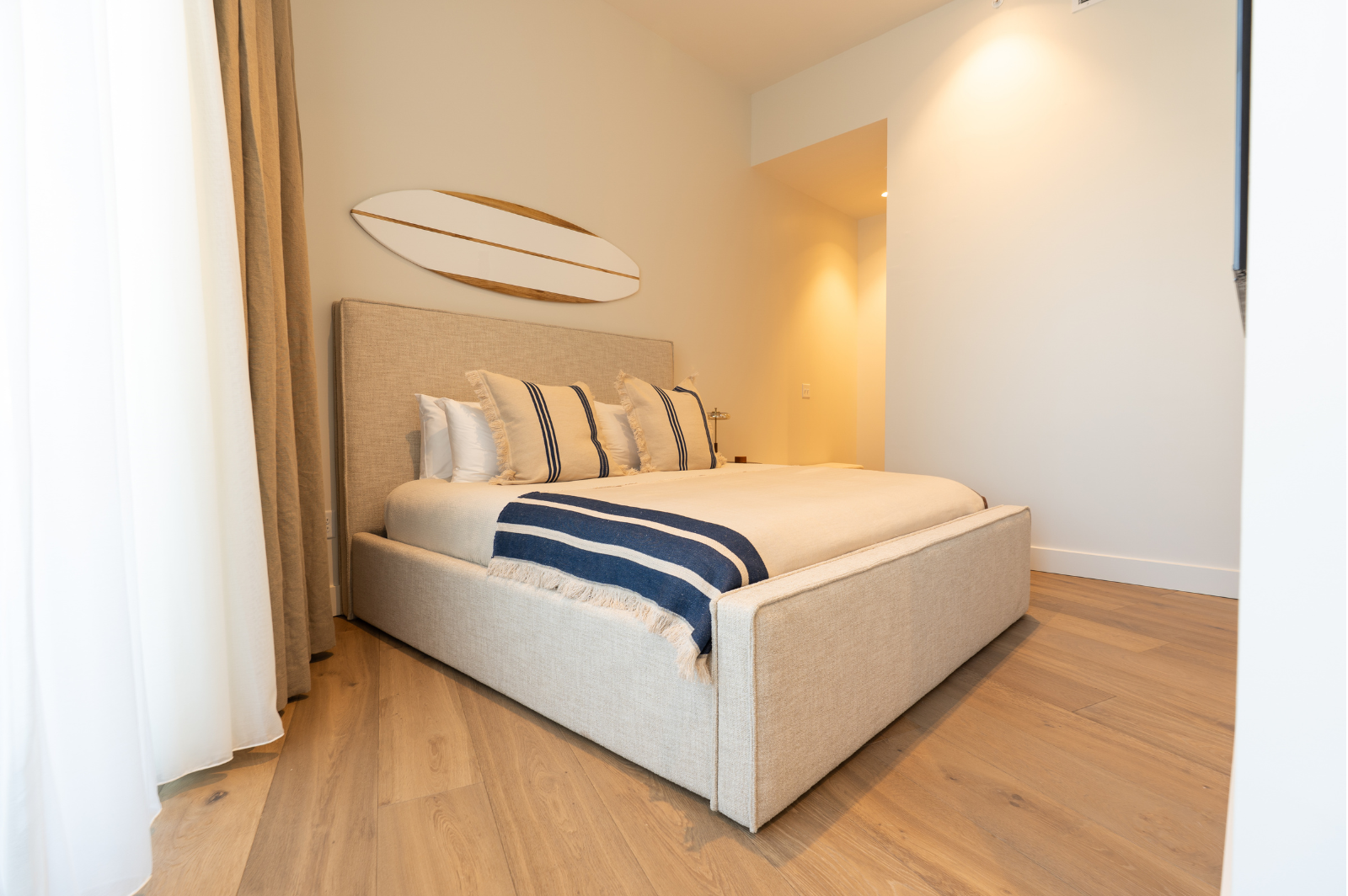 The hotel’s rooms are thoughtfully designed and deliberately understated, featuring elevated comfort and curated amenities that highlight surf and local culture. Seven rooms include private balconies with sweeping views of the Atlantic Park Surf lagoon. Guests also have access to a private lagoon-view infinity-edge pool and sun deck, and relaxed lounge spaces. Small in size and big on intentionality, The Sitio is also uniquely positioned to provide highly personalized touches along the guest experience, providing a bespoke coastal escape.